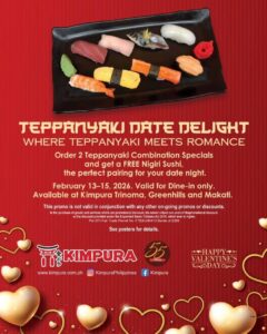 Love is sizzling at Kimpura! Enjoy our Teppanyaki Date Delight, order 2 Teppanyaki Combination Specials and get 1 FREE Nigiri Sushi from Feb 13–15, 2026.